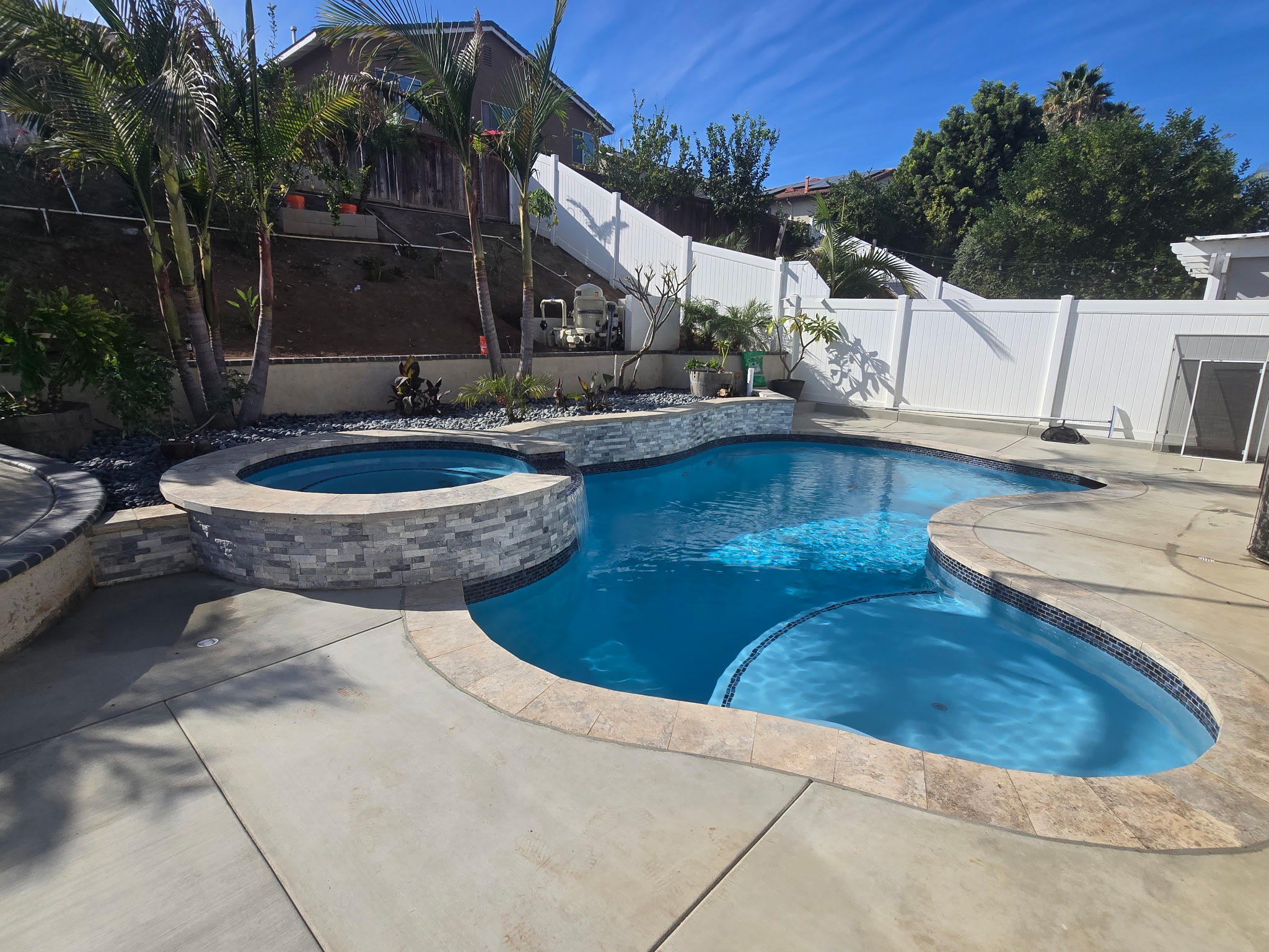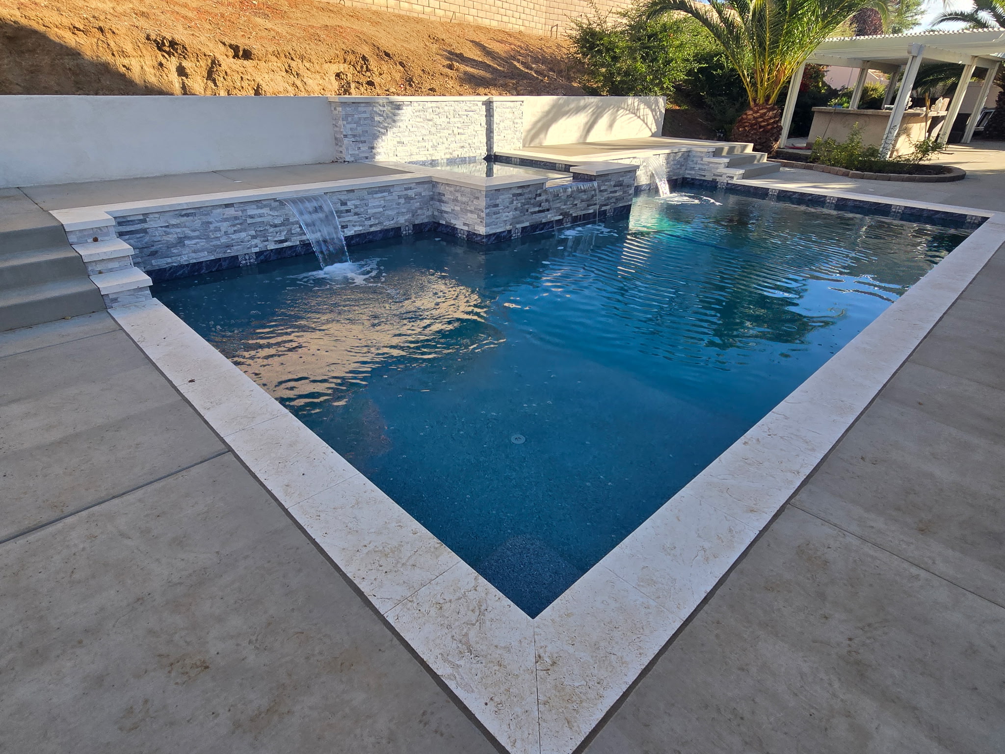 A typical custom pool project takes 8-12 weeks from groundbreaking to completion. This timeline includes excavation, structural work, plumbing, electrical, finishing, and final fill. Complex designs with additional features like spas, waterfalls, or extensive hardscaping may take longer. We’ll provide you with a detailed timeline during the design phase.